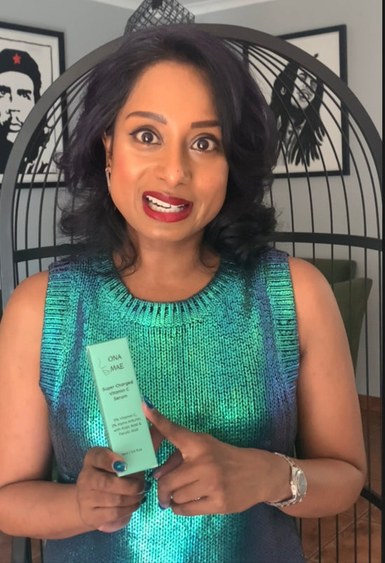 Vitamin C Serum South AfricaThere are multiple questions around Vitamin C serums or Vitamin C treatmentsSelecting the correct Vitamin C Serum is essential. You need a product that is going to show results over time (skin transformation is not a sprint, rather a marathon), but not one that will cause reactions and damage to your skin. This is where Ona Mae comes in, our Vitamin C Serum is called the Super-Charged Vitamin C Serum. This super-charged serum, with Vitamin C(5%) + Alpha Arbutin (2%) + Kojic Acid + Ferulic Acid + Licorice Root Extract. When we said Super-Charged, we meant it. This potent serum helps fade hyperpigmentation and dark marks (dark spot remover). Treats discoloured skin, also brightens complexion and helps even out skin tone, while minimizing fine lines and wrinkles, and hydrates skin. Formulated in South Africa. Ona Mae celebrates Skin of Colour. With multiple customer reviews. Star Ingredients: 5% Vitamin C, 2% Alpha Arbutin, Kojic Acid Ferulic Acid Licorice Root Extract Hyaluronic Acid Directions (How to apply our Vitamin C Serum): Apply a few drops to face and neck AM and/or PM (preferably), after cleansing, before moisturiser and oils. Don't forget Sunblock in the AM.